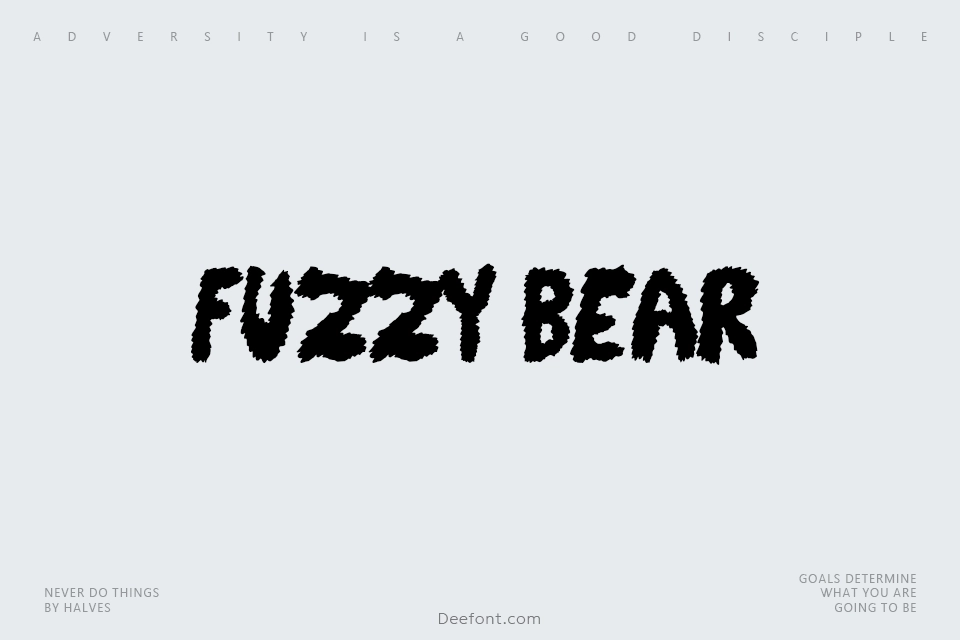 Fuzzy Bear is a playful and bold display font featuring a unique fuzzy texture that gives each letter a lively and dynamic appearance. With rounded edges and a slightly irregular outline, this whimsical typeface excels at capturing attention for fun and eye-catching designs. The consistent style across uppercase, lowercase letters, numbers, and special characters makes it ideal for children’s books, playful branding, party invitations, creative posters, logos, and headline designs that require a distinctive and engaging visual impact.
