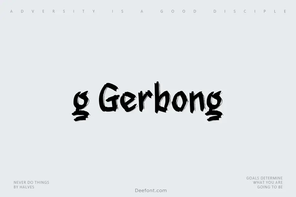 g Gerbong is a script font that commands attention with its rough, textured strokes and a raw, edgy energy. This trash-inspired typeface has an unconventional, rebellious feel, making it perfect for designs that need to stand out. It excels in horror-themed posters, bold logos, band branding, and any project requiring an authentic, handwritten grunge aesthetic for impactful titles.