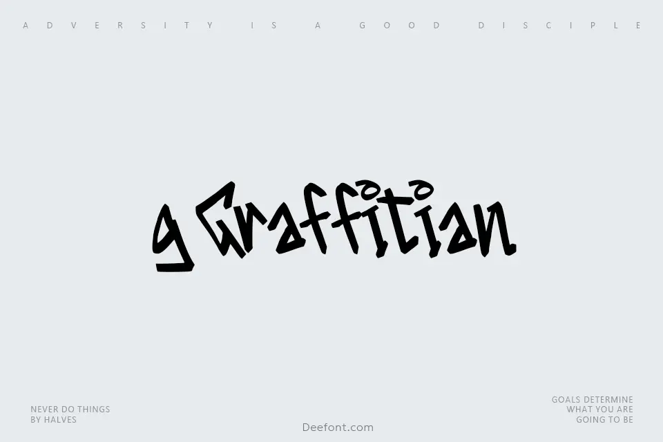 g Graffitian is an urban graffiti display font created by Wahyu Eka Prasetya that captures the rebellious spirit and expressive style of street art. This typeface combines artistic flair with contemporary aesthetics, making it ideal for branding, event posters, clothing designs, and creative projects that require a bold, edgy visual impact. With its dynamic letterforms and street art sensibility, g Graffitian brings personality and urban energy to modern design applications.