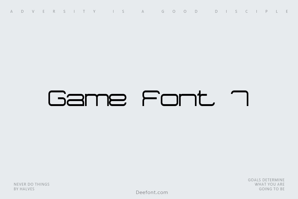 Game Font 7 is a distinctive display typeface created by Style-7 for freeware gaming applications, specifically designed for the “Bricks Breaker-7” game. This bold, rounded sans-serif font features thick letterforms with a modern, playful aesthetic that makes text stand out on digital screens. With 314 characters supporting multiple languages including accents and Euro symbol, it delivers excellent readability and impact for game titles, logos, and headlines. The font’s techno-inspired design combines contemporary styling with functional clarity, making it ideal for gaming interfaces, digital displays, and high-energy creative projects. Its extra-expanded width and light weight create a distinctive visual presence perfect for mobile gaming and retro-inspired designs.