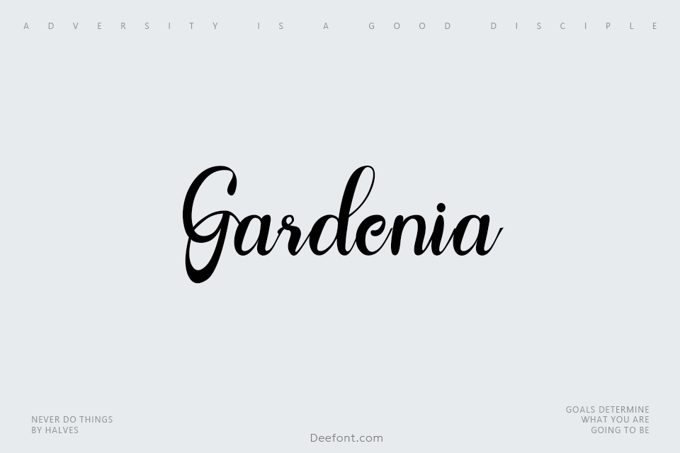 Gardenia is an elegant and sophisticated calligraphy script font designed with natural handwriting charm. This handcrafted typeface features stylized swashes and ligatures, making it perfect for logos, invitations, packaging, and wedding projects. With its feminine touch and contemporary elegance, Gardenia brings a personalized, artistic flair to any design while supporting multiple languages for versatile applications across creative projects.