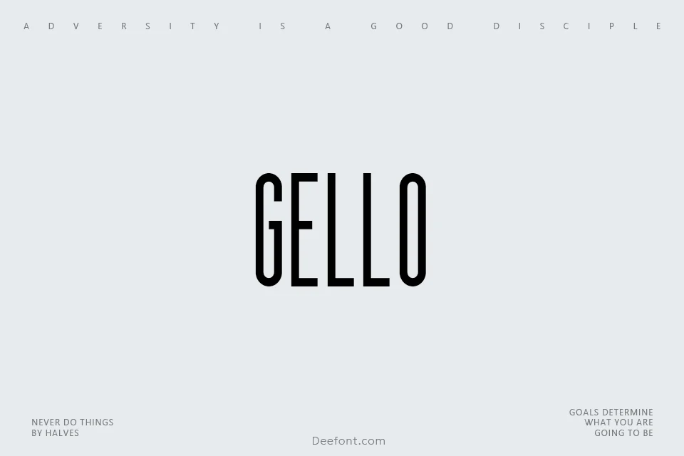 Gello is a modern sans-serif display font designed with elegance and sophistication in mind. Its slender, tall letterforms project a clean, refined aesthetic ideal for headlines, posters, and branding projects. Available in three versatile styles—Thin, Regular, and Bold—this geometric sans serif combines minimalist design principles with contemporary styling, making it perfect for luxury branding, upscale hospitality design, and creative typography that demands attention while maintaining sophistication.