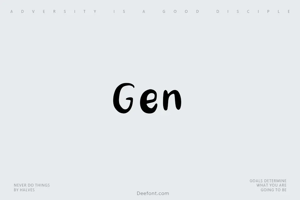 Gen Font is a delightful handwritten script typeface that captures the warmth and spontaneity of natural pen-to-paper writing. With organic letterforms and authentic brush-like strokes, this casual script font brings a personal, friendly character to any design. Perfect for posters, greeting cards, invitations, wedding designs, and creative headers, Gen Font excels at conveying warmth and personality. Its flowing, natural appearance makes it ideal for display purposes where a human touch and artistic flair are desired, creating visually engaging compositions that resonate with audiences seeking authentic, handcrafted aesthetics.