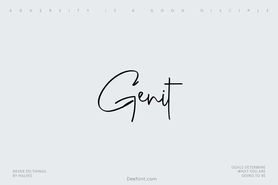 Genit Font is a classy, elegant, modern, and natural handwritten script typeface designed for minimalist design projects that demand sophistication. With flowing, graceful letterforms and refined brushstrokes, this font combines contemporary aesthetics with organic hand-lettering charm. Perfect for creating elegant branding materials, wedding invitations, greeting cards, stylish logos, event posters, product packaging, and decorative display titles. The 256 glyphs provide comprehensive character support, making it versatile for diverse creative applications. Whether designing luxury branding, romantic wedding stationery, or modern editorial headlines, Genit delivers timeless elegance and professional polish to elevate any design project with its natural, refined handwritten character.