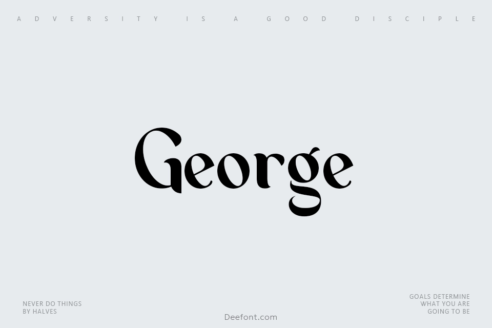 George is a classic serif typeface designed by Dharmas Studio, featuring elegant proportions and sophisticated styling. With its contrasting lines and curved terminals, this versatile font delivers a sleek, timeless aesthetic perfect for creating bold headlines, wedding invitations, and luxury branding projects. The typeface combines vintage charm with contemporary elegance, making it an excellent choice for designers seeking refined typography with personality and character for professional and creative applications.