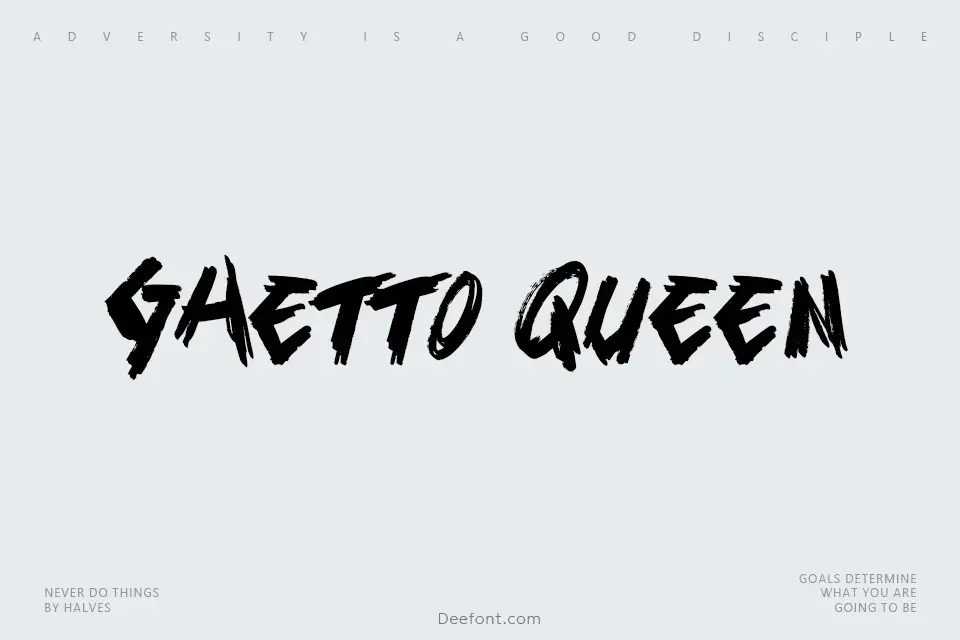 Ghetto Queen is a dynamic script display font featuring bold, hand-painted brush strokes and an urban street art aesthetic. With its flowing letterforms and artistic character, this typeface excels at creating impactful headlines, tattoo lettering, and street-style design projects. The font’s energetic personality makes it ideal for poster design, graffiti-inspired graphics, party invitations, and creative branding applications where personality and visual impact are paramount. Its brush-like qualities give designs an authentic, hand-crafted appearance perfect for contemporary urban aesthetics.
