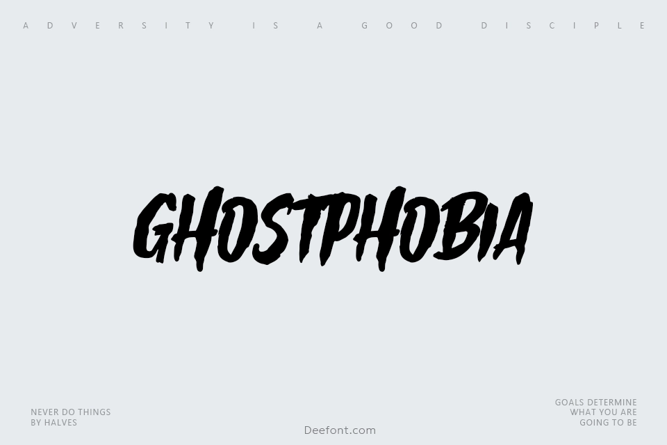 Ghostphobia is a hauntingly stylish display font designed for horror and Halloween-themed projects. Featuring wispy strokes with shadowy undertones, this bold brush-style typeface evokes mystery and supernatural allure while maintaining sharp readability. Perfect for posters, album covers, gaming designs, and gothic branding, Ghostphobia captivates with its ghostly presence and dramatic flair, delivering a chilling yet sophisticated typographic touch for projects requiring strong visual impact.