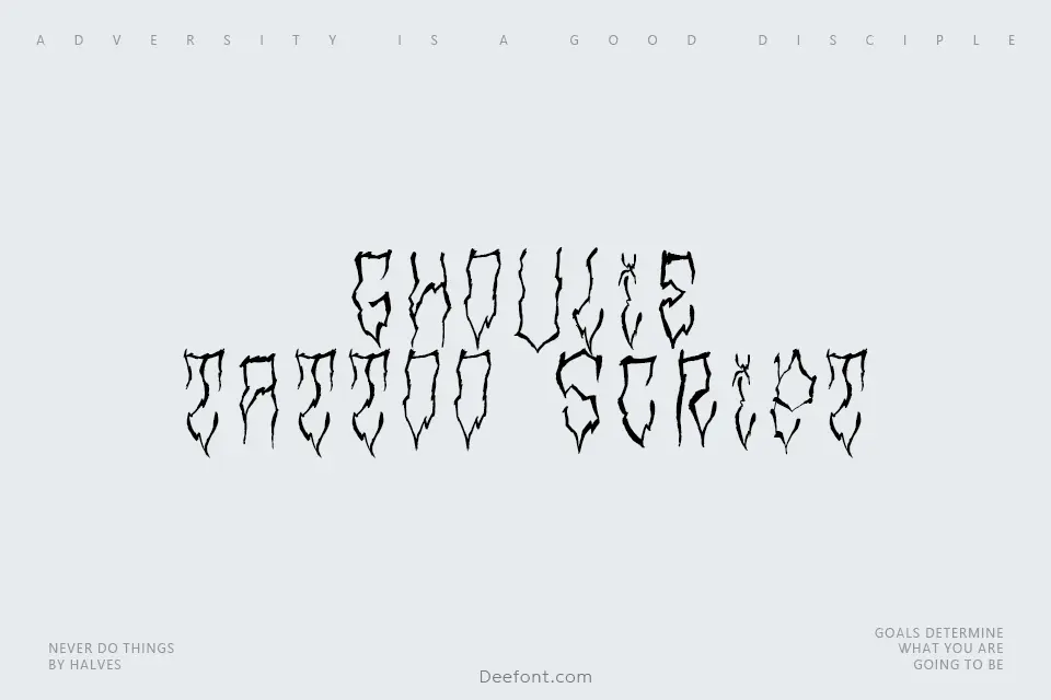 Ghoulie Tattoo Script is a distinctive hand-drawn tattoo font inspired by classic knuckle tattoo script designs. Created by an experienced font designer, this versatile typeface features authentic, edgy letterforms with minor imperfections that add character and authenticity. Perfect for tattoo flash designs, merch graphics, and creative projects requiring bold, artistic typography. The font combines traditional tattoo aesthetics with modern digital craftsmanship, making it ideal for those seeking authentic vintage tattoo-inspired lettering for both personal and commercial applications.