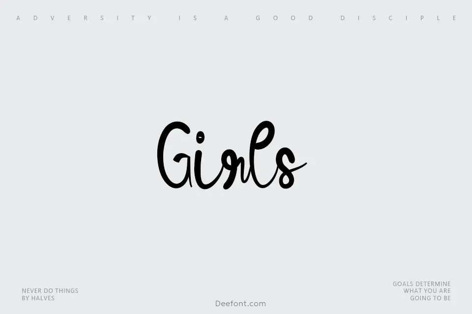 Girls is an elegant handwritten script typeface featuring flowing curves and delicate letterforms ideal for creative projects. This feminine display font brings a playful yet refined aesthetic to invitations, greeting cards, posters, logos, and feminine branding. With its soft, approachable handwritten style and decorative swashes, Girls Font excels at adding personal warmth to design compositions while maintaining excellent readability for headlines and display purposes.