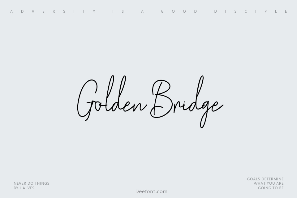 Golden Bridge Script is an elegant handwritten font designed for modern creative projects. This sophisticated script typeface features smooth, flowing letterforms perfect for logos, invitations, product packaging, posters, and social media graphics. With its refined aesthetic and versatile character set, Golden Bridge Script brings professional elegance to wedding designs, greeting cards, and merchandise branding. The font’s beautiful curves and dynamic letterforms make it ideal for projects requiring an upscale, contemporary handwritten style that combines authenticity with polished sophistication.