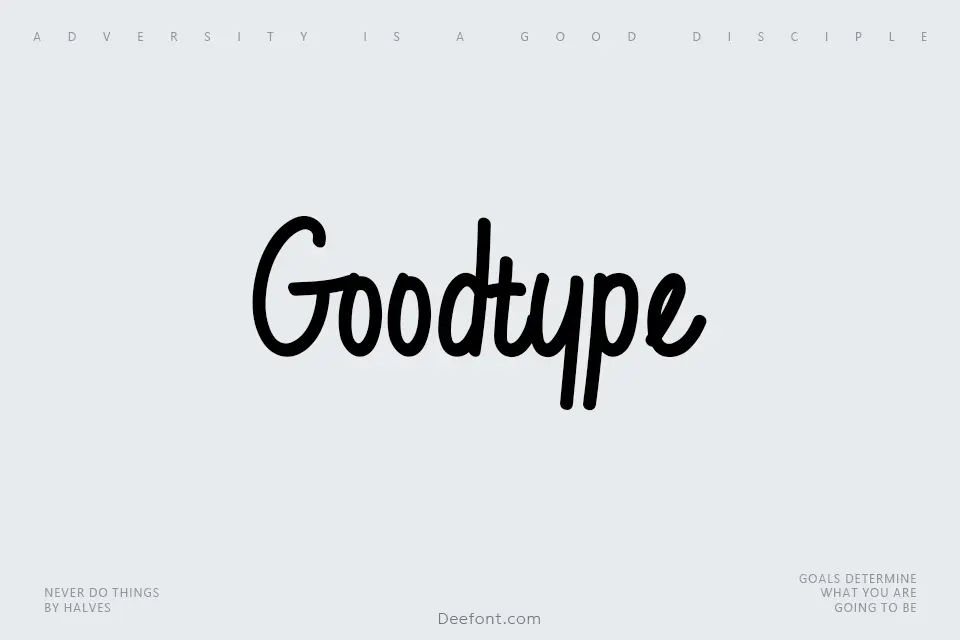 Goodtype Font is a contemporary monoline handwritten display typeface that captures the authentic feel of marker pen lettering with clean, consistent single-stroke letterforms. Ideal for poster headlines, logo branding, social media graphics, and creative visual projects, this handwritten font delivers a casual yet professional appearance. The font’s distinctive monoline style—with uniform line weights throughout all characters—makes it versatile for both playful invitations and modern branding applications. Its approachable aesthetic conveys friendliness and personal connection, perfect for fashion campaigns, event announcements, greeting cards, and product packaging designs that require a human, creative touch without sacrificing legibility or visual impact.
