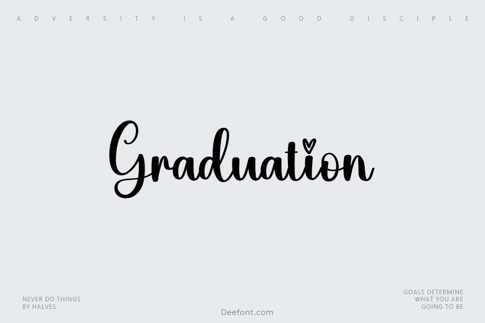 Graduation is an elegant modern calligraphy script font designed by Scratchones with beautiful creative strokes. Perfect for wedding invitations, business cards, magazine covers, logotypes, fashion quotes, and watermarks. This romantic script typeface features PUA encoding technology for easy glyph access, combining elegance with contemporary design elements ideal for professional and creative projects.