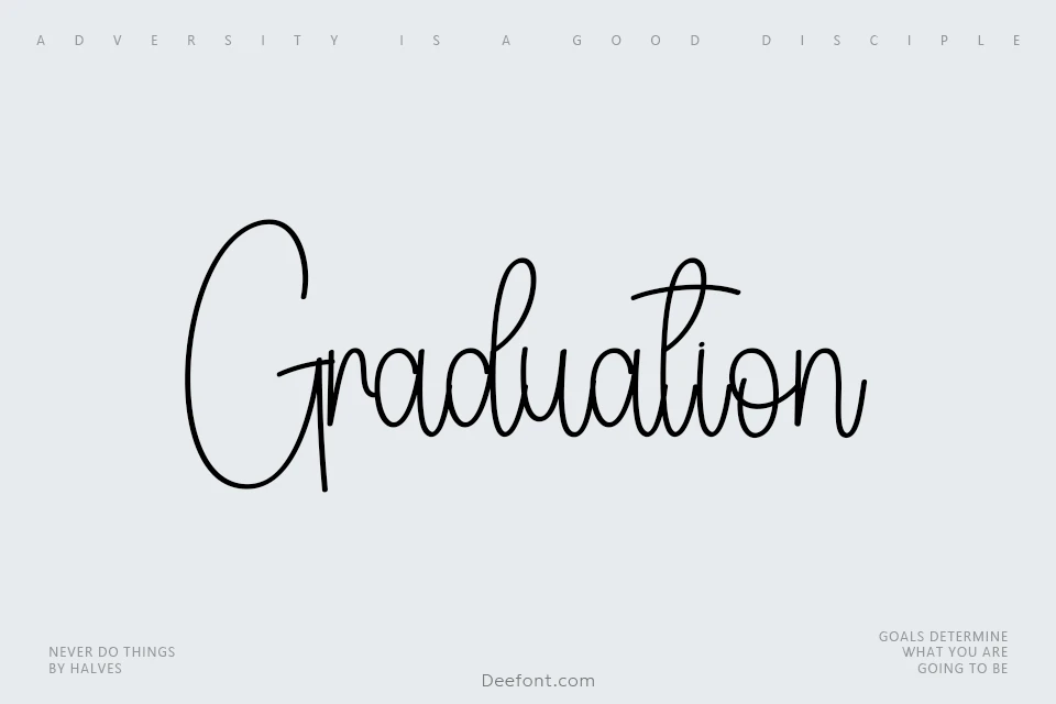 Graduation Script Font is a charming handwritten font that exudes warmth and friendliness. With its smooth, flowing strokes and playful curves, it brings a sense of whimsy to invitations, packaging, and social media graphics. Spread joy and delight with the inviting charm of this typeface. Perfect for wall displays, wedding invitations, social media post logos, advertisements, product packaging, photography, watermarks, stationery, and any project that requires tasteful handwriting.Graduation Script Font offers a modern and elegant look, making your creations luxurious and attractive.