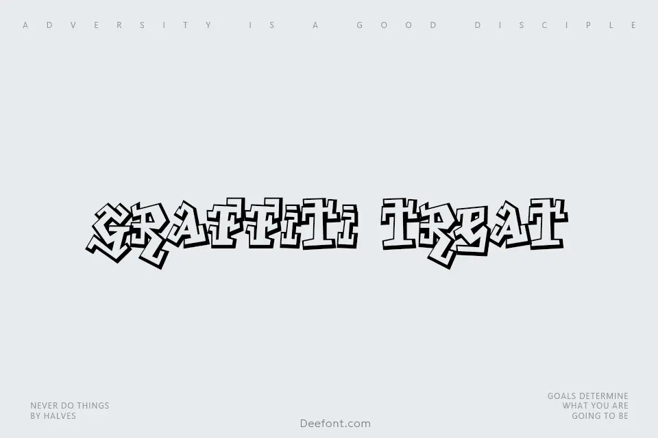 Graffiti Treat is a staggered, angular, graffiti-inspired display font that captures the raw energy and rebellious spirit of street art. Designed with bold strokes and irregularly shaped letters that mimic hastily sprayed graffiti, this typeface blends spontaneity with artistic expression. Despite its complex, stylized appearance, the font remains surprisingly readable, making it ideal for headlines, logos, posters, urban event promotions, and creative branding projects seeking to inject urban vitality and youthful rebellion into their designs.
