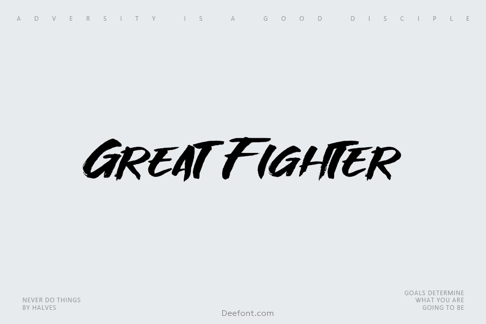 Great Fighter is a dynamic and elegant handwritten brush font crafted by Khurasan, designed to bring energy and sophistication to your creative projects. With its bold strokes and vintage aesthetic, this versatile typeface excels at creating eye-catching headlines, logos, and display text. The font features a complete character set including capitals, lowercase letters, multilingual support, numerals, and punctuation marks. Perfect for designers seeking a modern yet sophisticated touch that combines power with elegance, Great Fighter transforms ordinary typography into remarkable visual statements.