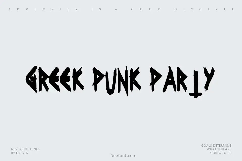 Greek Punk Party is a bold, condensed script display font that merges ancient Greek classical aesthetics with rebellious punk energy. This trash-style typeface delivers raw, edgy character with a grungy aesthetic ideal for commanding attention on posters, flyers, and album covers. Perfect for punk rock bands and urban fashion branding, the font excels at creating eye-catching social media graphics, tattoo designs, and unconventional magazine layouts that embody nonconformity and street-art attitude.