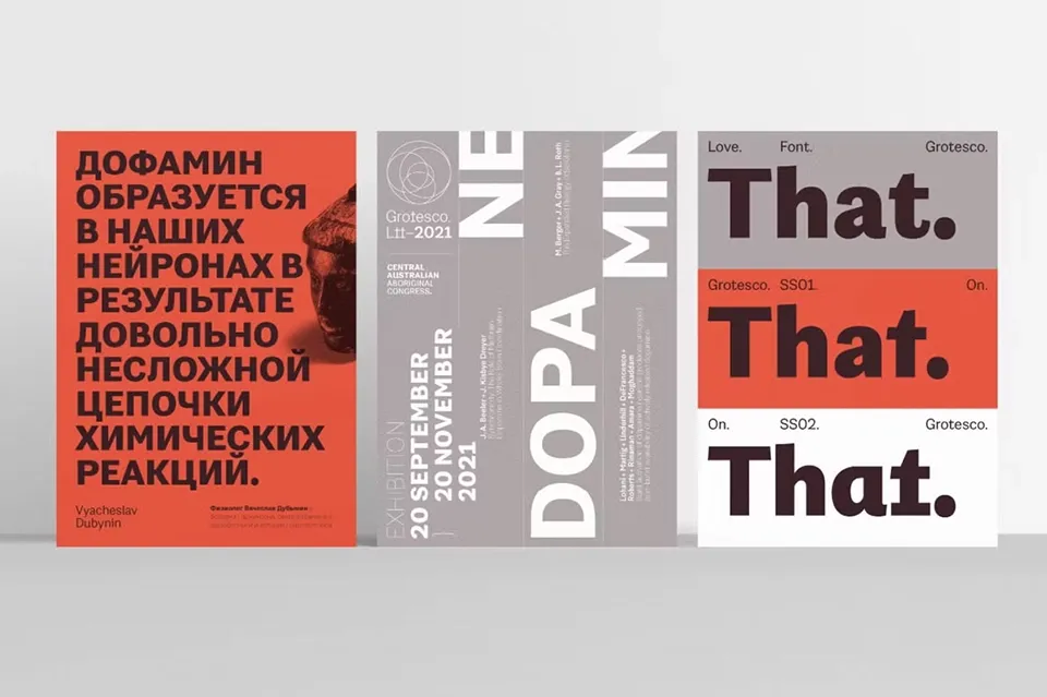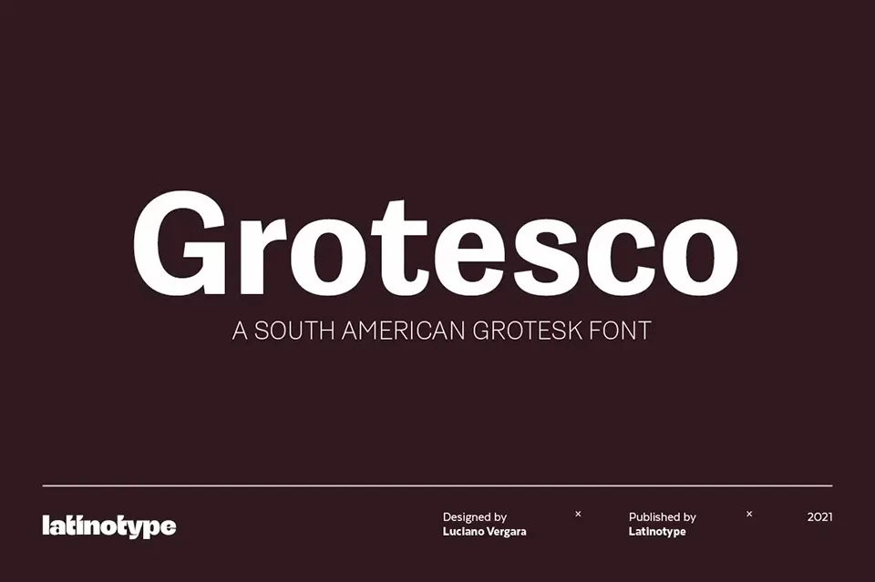 Grotesco Font Family is a modern South American grotesk sans serif typeface designed by Luciano Vergara and published by Latinotype. It blends the functionality of American grotesk typefaces with a unique Latino rhythm and flair, making it both serious and versatile. With two alternate sets, Grotesco allows you to add distinctive flavor to logos, branding, and advertising designs. The family includes a wide range of styles and supports extended character sets, including Cyrillic and various currency symbols.