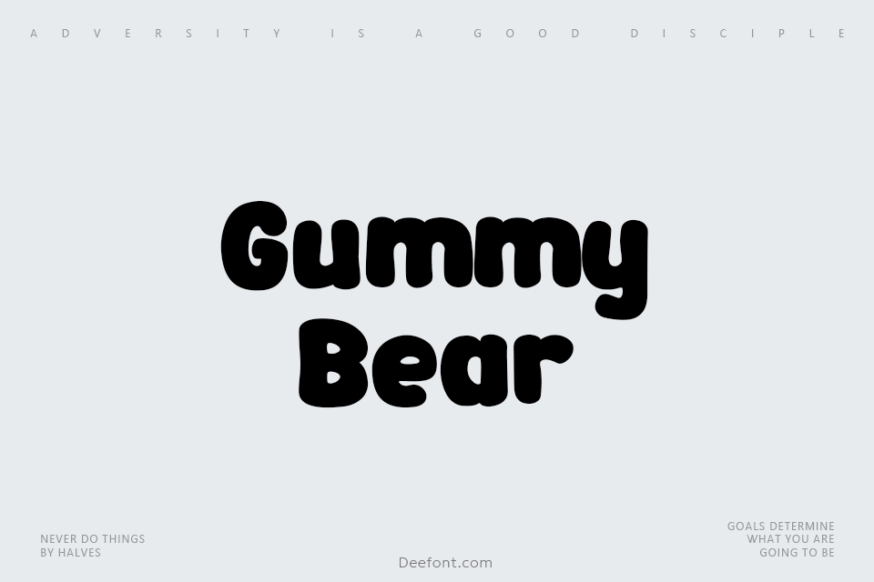 The Gummy Bear font is a playful and eye-catching display typeface, ideal for cartoon, children’s, and creative projects. Its rounded, bubble-like letterforms exude a fun and friendly vibe, making it perfect for posters, invitations, and branding that need a cheerful touch. Designed for maximum visual impact, Gummy Bear stands out in both digital and print media, helping your designs feel approachable and memorable.