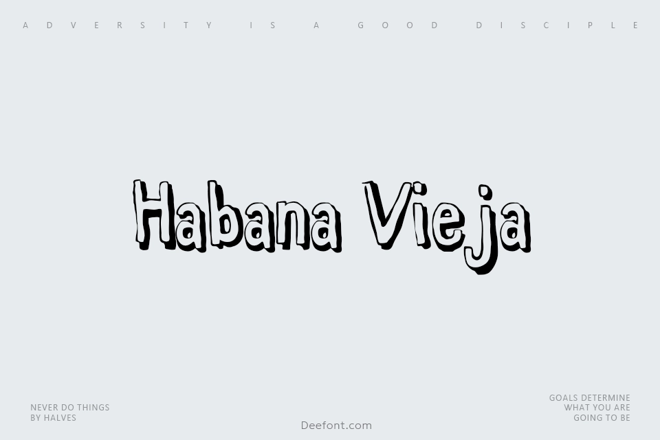 Habana Vieja is a distinctive 3D display font inspired by hand-painted signage from Havana’s historic Old Town district. Designed with weathered, eroded outlines and bold shadows, this charming sans-serif font captures the vibrant character of aged street lettering. Perfect for eye-catching headings, posters, and signage, it features West European diacritics for multilingual support and works exceptionally well in creative and design-driven projects seeking authentic vintage appeal.