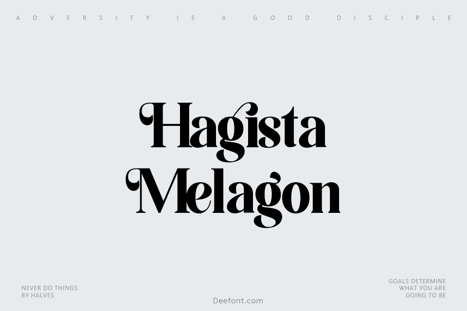 Hagista Melagon Font font is a modern and classic serif typeface that features a unique, elegant style with contemporary appeal. Its refined curves and stylish details make it ideal for sophisticated branding, editorial design, and creative projects that require a touch of luxury and modernity.