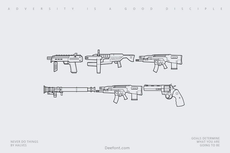 HalfLife2 is a distinctive dingbats font designed by Valve Software, featuring military and weapons-themed symbols perfect for game-inspired creative projects. This symbolic font transforms standard characters into graphic elements including guns, arrows, and other tactical iconography. With its 101 glyphs and stencil-style design, HalfLife2 adds a futuristic, industrial edge to any creative work. Originally created for the acclaimed video game Half-Life 2, this font has become popular among designers seeking unique, thematic typography for posters, game assets, and entertainment-focused branding.
