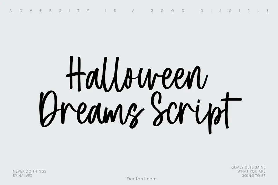 Halloween Dreams Script is a flowing, hand-drawn display font that brings together whimsy and spooky charm. With its connected letterforms and slight slant, this typeface delivers quirky character perfect for Halloween-themed projects. The playful yet eerie aesthetic makes it ideal for festive posters, party invitations, greeting card designs, horror-themed promotions, and holiday event tickets. Featuring 242 carefully crafted characters with decorative accents, Halloween Dreams Script adds personality and festive appeal to any creative project requiring a bold, distinctive display face.