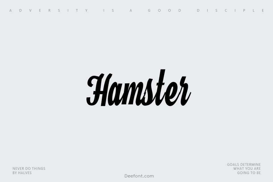 Hamster is a cursive typeface inspired by brush lettering and traditional sign painting. This elegantly crafted script font is suitable for branding, clothing design, signage, and posters. With its dynamic flow and legibility, Hamster brings artistic flair to headlines and creative projects. The typeface combines traditional hand-lettering aesthetics with modern design principles, making it a versatile choice for designers seeking distinctive typography that captures attention and conveys personality in both print and digital applications.