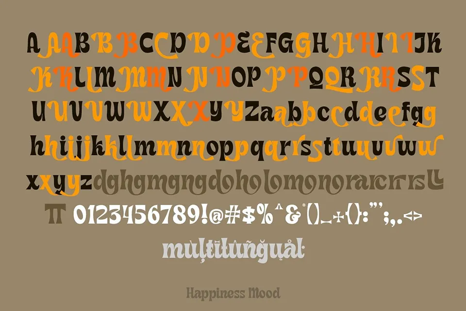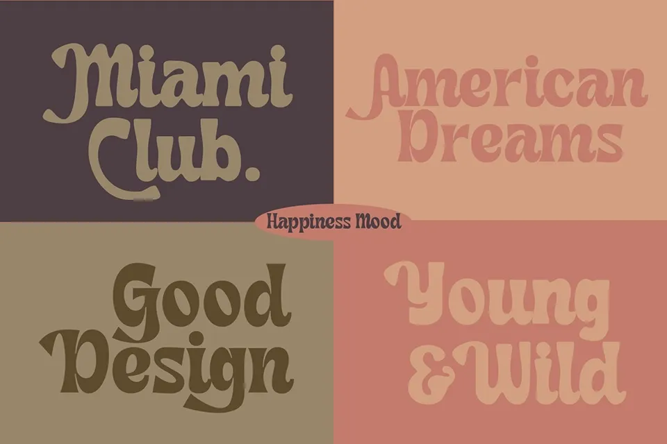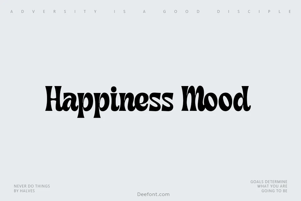 Happiness Mood Font is a retro serif font family featuring two styles: clean and stamp. Its playful, bold shapes evoke a sense of joy and nostalgia, making it perfect for branding, product packaging, invitations, quotes, t-shirts, labels, posters, and logos. With its distinctive character, Happiness Mood adds a lively and cheerful touch to any creative project.