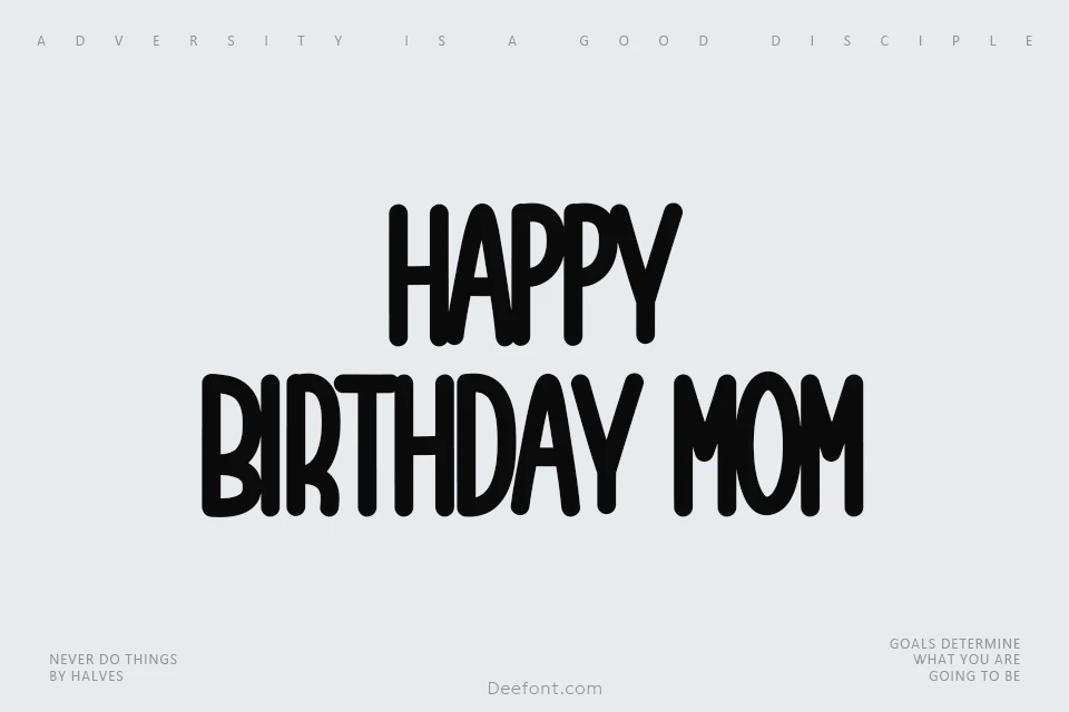 Happy Birthday Mom Font is a charming and versatile font designed with a playful, bold aesthetic. This decorative typeface features smooth, rounded strokes and a friendly style that makes it perfect for creating heartfelt birthday messages and celebrations. The font’s latest style letters are ideal for various applications, including wall displays, wedding invitations, social media posts, logos, advertisements, and product packaging. Its well-balanced design combines cursive elements with modern sensibilities, making it both elegant and approachable. The font’s warm and inviting character makes it particularly suitable for creating personalized birthday greetings and special occasion designs that convey love and celebration.