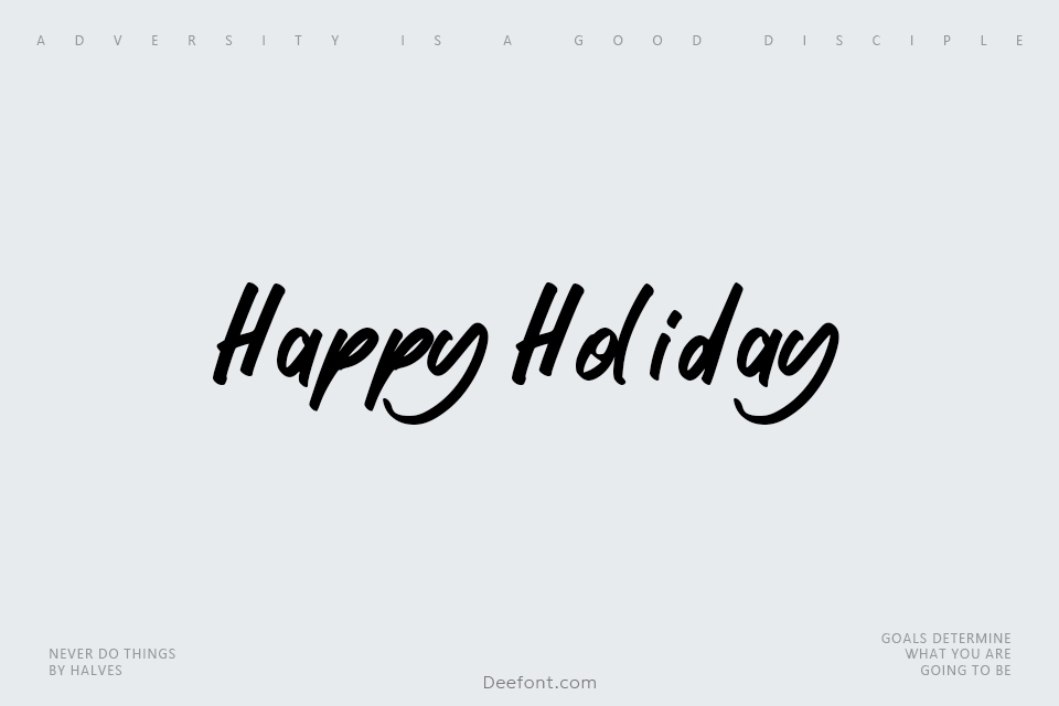 Happy Holiday is a casual handwritten script font that brings warmth and creativity to your designs. With its natural, flowing letterforms created using marker-inspired strokes, this typeface is perfect for personal projects including greeting cards, wedding invitations, thank you cards, and festive designs. The font features 236 glyphs with comprehensive support for accents and special characters, making it versatile for various creative applications. Its friendly, approachable aesthetic adds personality to any design while maintaining legibility, whether used as headlines or decorative elements in seasonal projects.