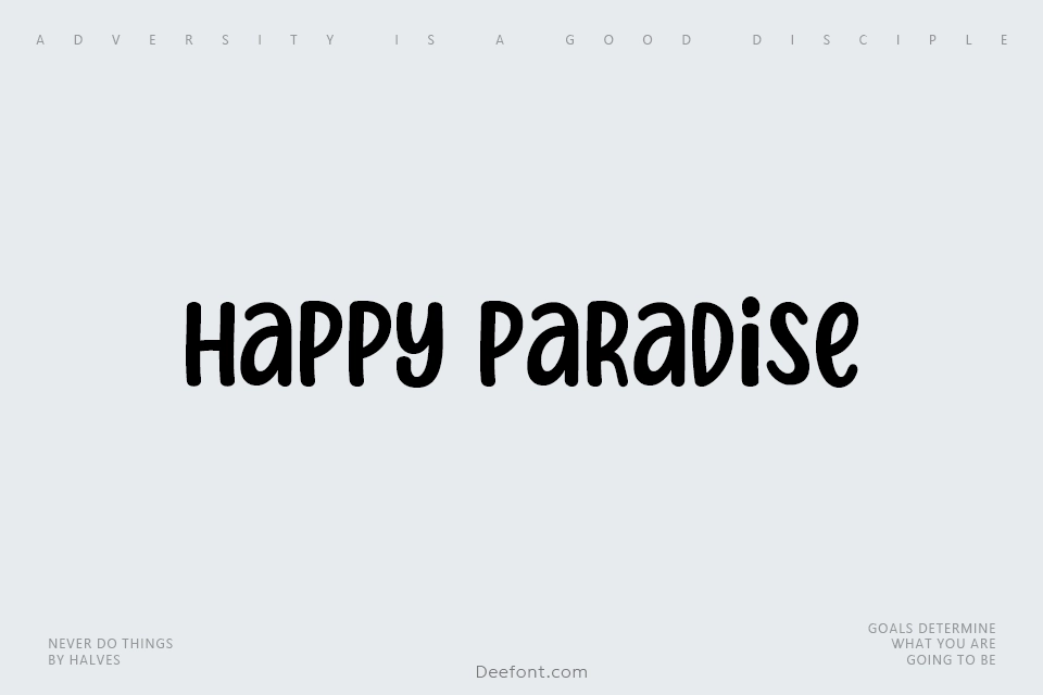 Happy Paradise is a condensed cartoon display font with rounded forms and friendly appearance created by MJType. This modern aesthetic typeface features an approachable mood and casual style, perfect for designs intended for kids and playful projects. The font works excellently for posters, invitations, brochures, coloring book covers, gift cards, and social media content that requires a fun and engaging aesthetic.