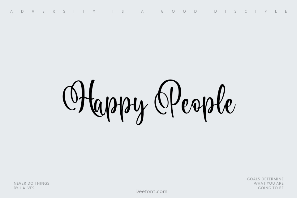 Happy People is a charming beauty script font inspired by bouncy calligraphy style, designed by Blankids Studio. Perfect for display, t-shirt designs, craft projects, quote signs, and logotypes, this font combines playful elegance with legible letterforms. With its warm and joyful personality, Happy People adds character and charm to any creative project, making it an ideal choice for wedding invitations, social media graphics, and branding applications that need a personal touch.