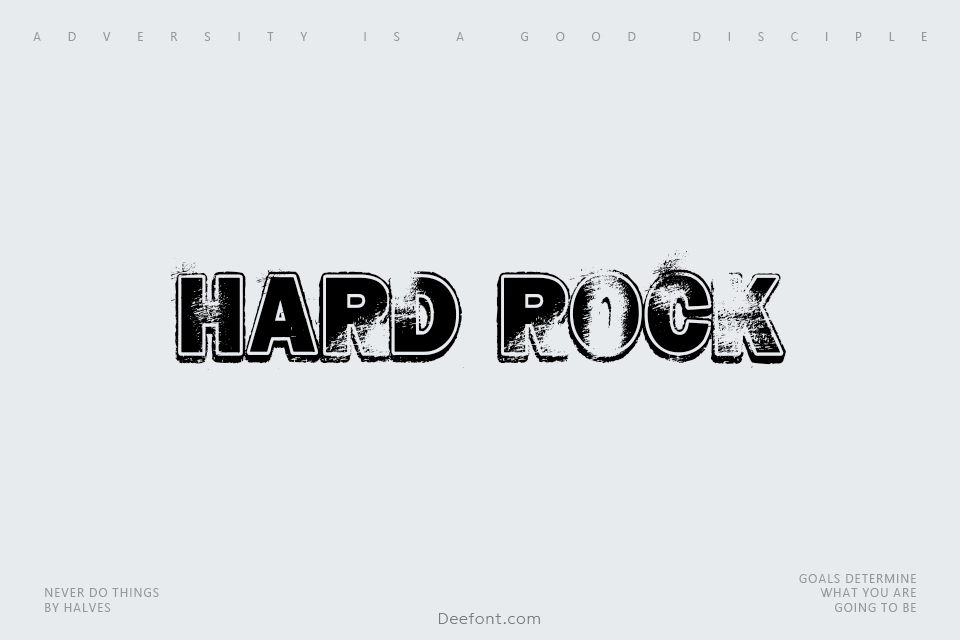 Hard Rock is a bold and edgy eroded display font that delivers a striking, distressed aesthetic perfect for rock, music, and entertainment-themed designs. With its weathered appearance and powerful presence, this typeface commands attention for posters, logos, album covers, and creative projects that demand an intense visual impact. The font’s unique eroded texture gives every letter an authentic, rebellious character while maintaining excellent readability for headlines and bold statements.