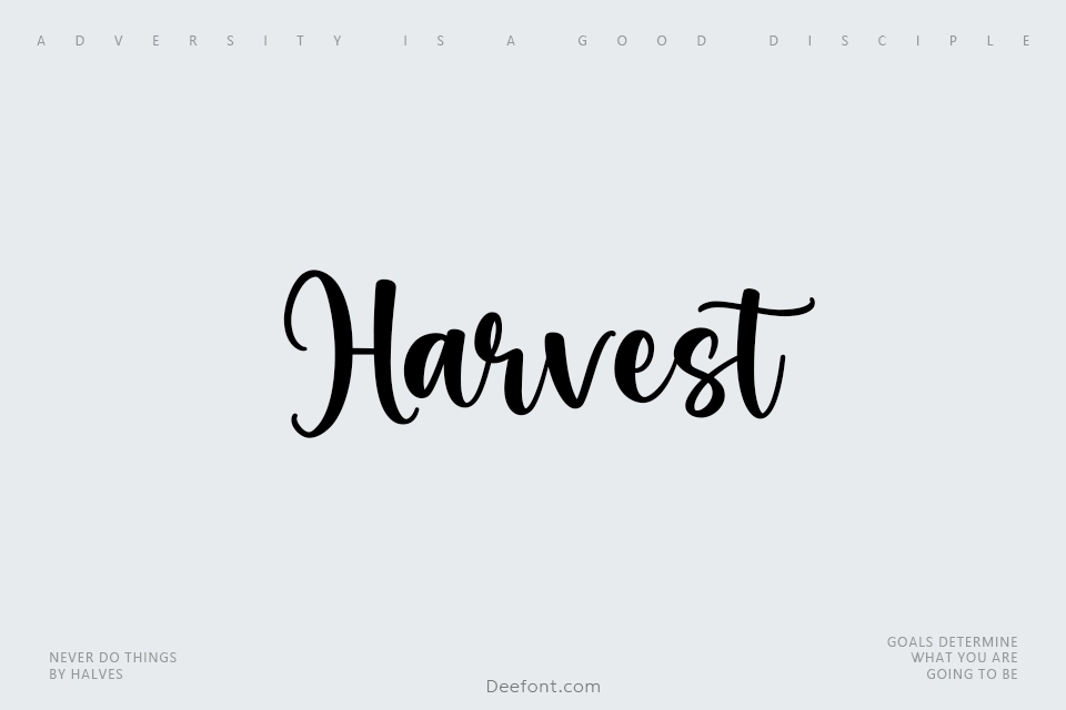 Harvest is an elegant script and calligraphy font that brings sophisticated charm to your typography. This flowing typeface combines classical handwritten aesthetics with modern design sensibilities, making it perfect for wedding invitations, greeting cards, and artistic projects. With graceful letterforms and smooth connections, Harvest adds a touch of refined elegance to any creative work, offering designers a versatile tool for creating memorable visual communications.