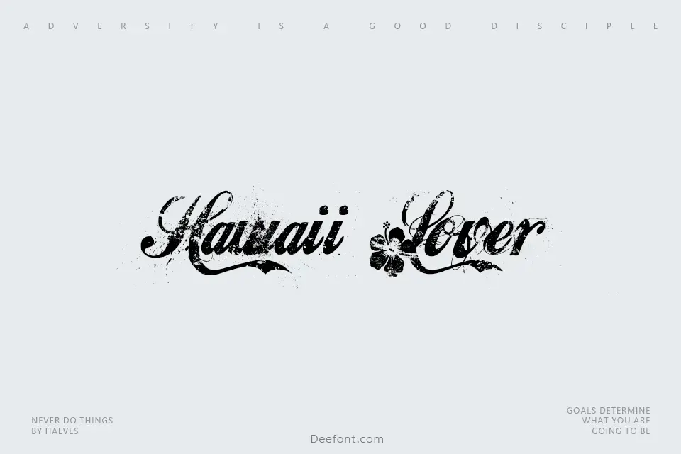 Hawaii Lover is a distinctive tropical script font characterized by flowing, organic letterforms with grunge textures and hibiscus-inspired embellishments. This display typeface captures the essence of Hawaiian beaches with its natural, hand-drawn aesthetic. The font features 93 carefully crafted characters, combining playful curves with slightly distressed strokes to evoke a relaxed island atmosphere. Ideal for vacation posters, beach-themed invitations, tropical logos, festive event graphics, and decorative titles, Hawaii Lover brings authentic aloha spirit to creative projects while maintaining excellent legibility for both large display applications and medium-sized headlines.