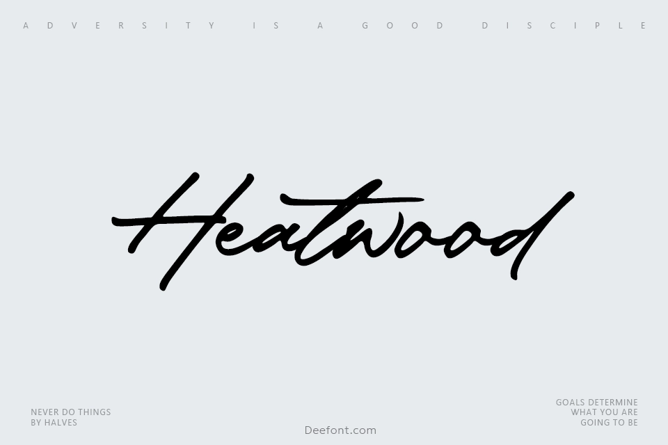 Heatwood is an elegant signature script font crafted by Balpirick Studio, featuring a dynamic and energetic cursive style with fluid, interconnected letters that mimic natural handwriting. This bold, confident typeface includes a slight slant and varied character sizing that creates an organic, personal aesthetic. With 296 glyphs and multilingual support, Heatwood is ideal for wedding invitations, greeting cards, product packaging, branding projects, and social media graphics. The font combines contemporary elegance with decorative charm, making it perfect for any creative project requiring a handwritten touch and sophisticated personality.