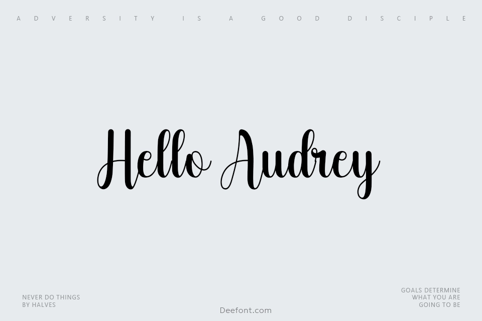 Hello Audrey is a modern and elegant script font designed for creative typography projects. This charming handwritten typeface combines femininity and sophistication, perfect for wedding invitations, greeting cards, branding, logos, and elegant packaging designs. With multiple alternates and multilanguage support, it adds a luxurious touch to any project requiring a handwritten aesthetic.