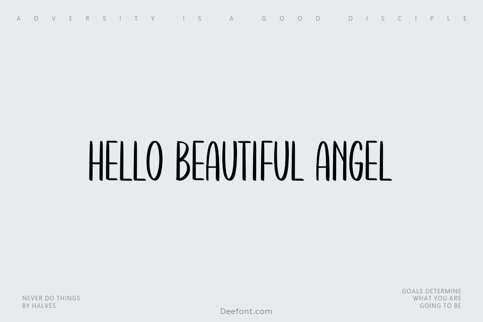 Hello Beautiful Angel is a sophisticated script font that seamlessly blends vintage-inspired elegance with contemporary freshness. This condensed handwritten typeface retains classic calligraphic influences while maintaining a modern aesthetic. Perfect for creating elegant letterheads, titles, stationery, and sophisticated branding materials, this font features rounded, elongated proportions that capture the essence of traditional calligraphy with a refined, approachable appearance.