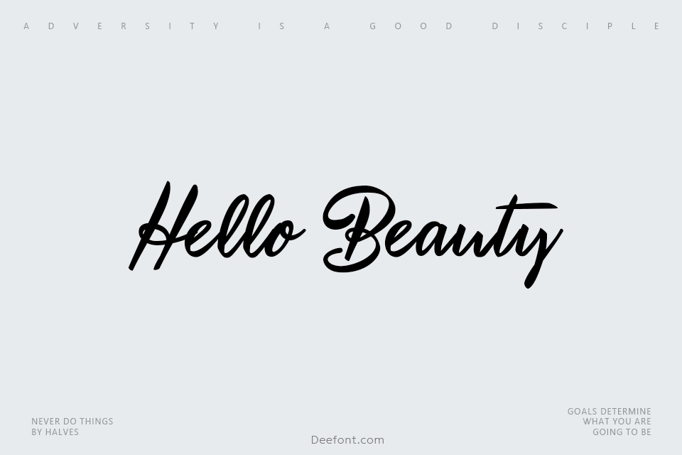 Hello Beauty is an elegant handwritten script font designed by Billy Argel Fonts ®, featuring smooth, flowing strokes and calligraphy-inspired letterforms. This versatile display typeface combines modern sophistication with personal charm, making it ideal for creative projects including invitations, greeting cards, branding materials, posters, and decorative applications. With its distinctive hand-lettered quality and 297 glyphs, Hello Beauty brings warmth and artistic appeal to any design project while maintaining excellent readability.
