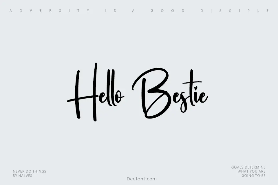 Hello Bestie is a charming handwritten script font featuring fluid, organic letterforms with a friendly and contemporary aesthetic. The typeface showcases flowing curves and natural pen-like strokes that evoke a personal, artistic quality. Perfect for wall displays, wedding invitations, social media post logos, product packaging, labels, and greeting cards, this font brings an approachable yet stylish character to any creative project. The playful elegance of its design makes it ideal for brands seeking a warm, personable voice in typography.