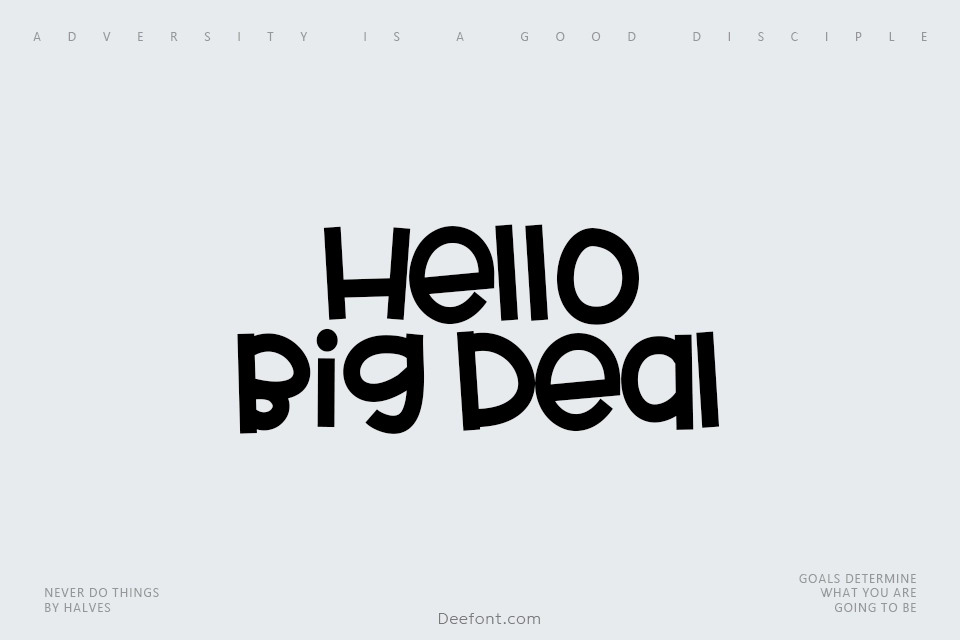 Hello Big Deal is a playful and whimsical display font designed by Jen Jones, combining cartoon-style charm with fancy letterforms perfect for creative projects. With its distinct personality and fun aesthetic, this typeface excels at bringing joy and character to headlines, titles, and decorative text. The font’s unique appeal makes it an excellent choice for designs targeting engagement and visual impact, offering designers a versatile tool for adding personality to their typography while maintaining excellent readability. Featuring 190 glyphs and full support for extended characters, Hello Big Deal delivers professional results for any creative endeavor seeking a touch of whimsical charm.