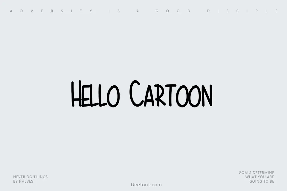 Hello Cartoon is a charming handwritten display typeface crafted with bubbly, rounded letterforms and cheerful hand-drawn characteristics. Featuring soft, friendly curves and playful proportions, this font excels at capturing a warm, approachable tone ideal for children-themed designs, greeting cards, birthday invitations, posters, and festive projects. The font’s inherent lightness and joyful nature make it perfect for creating engaging titles, headlines, and decorative text in educational materials, product packaging, and social media graphics targeting young audiences or designs seeking an innocent, whimsical aesthetic.