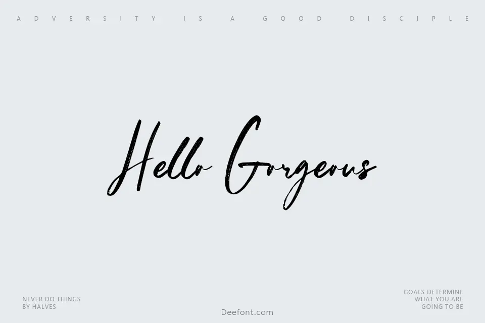 Hello Gorgeous Script is a sophisticated handwritten script font featuring flowing, feminine letterforms with graceful curves and organic strokes. This elegant typeface delivers a personal, authentic aesthetic ideal for wedding invitations, greeting cards, social media graphics, poster designs, and creative branding projects. The font’s natural, hand-drawn quality brings warmth and elegance to any typographic application, making it particularly effective for luxury, beauty, lifestyle, and event-focused designs.
