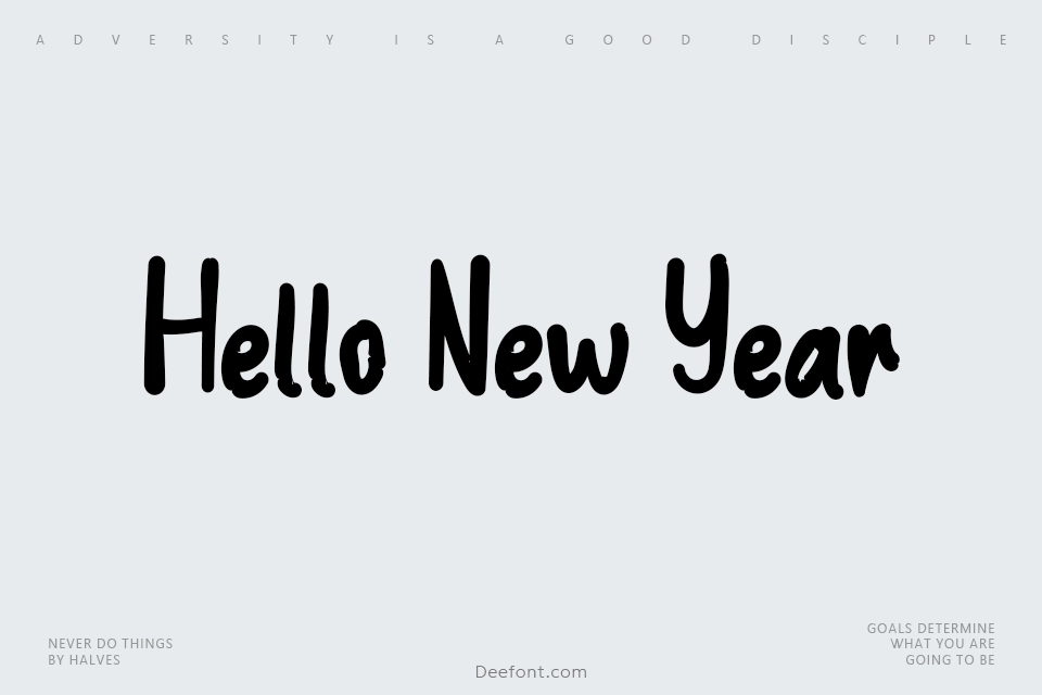 Hello New Year is a stylish handwritten brush script font perfect for creative projects including wedding invitations, social media logos, advertisements, and product packaging. With its elegant modern aesthetic and flowing curves, it brings distinctive character to any design work requiring artistic flair and contemporary appeal.
