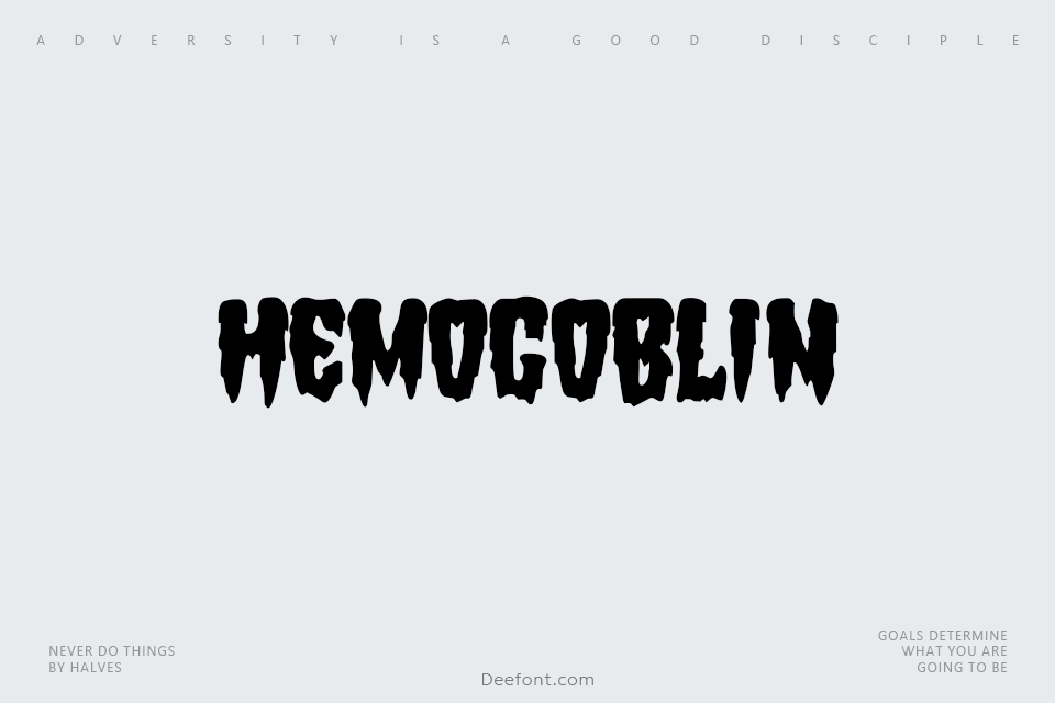 Hemogoblin is a distinctive display font created by Iconian Fonts, featuring a bold and unconventional design perfect for horror, fantasy, and creative projects. With 19 font file variations including regular, italic, rotated, and 3D styles, this typeface delivers dramatic visual impact through its unique letterforms and dynamic character. The font supports extended Latin character sets with accents and maintains excellent legibility across different sizes and applications. Ideal for movie titles, game interfaces, poster designs, and Halloween-themed graphics, Hemogoblin brings an edgy and memorable quality to any design endeavor.