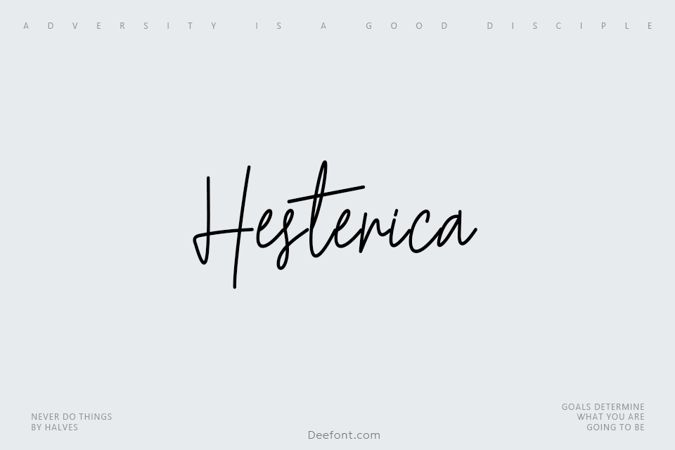 Hesterica is a simple, playful script typeface that brings a fun and friendly aesthetic to any design project. This handwritten-style font is perfect for logos, titles, t-shirt designs, indie flyers, and posters. With its bouncy, clean letterforms and charming personality, Hesterica adds a creative touch to invitations, greeting cards, and social media content. The font features a beautiful flowing style that works exceptionally well for headlines and decorative applications, making it an ideal choice for designers seeking a lighthearted yet professional appearance for their creative endeavors.