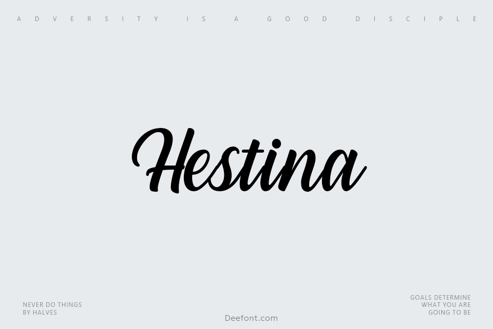 Hestina Font is an elegant flowing calligraphy typeface featuring smooth cursive letterforms with refined curves and graceful connections. Designed by Keithzo and produced by 7NTypes, this sophisticated script font combines bold uppercase letters with consistently slanted lowercase characters, making it perfect for invitations, greeting cards, branding, logos, and high-end design projects. The font’s 299 glyphs support multiple languages and provide a cohesive aesthetic across all letterforms and special characters.