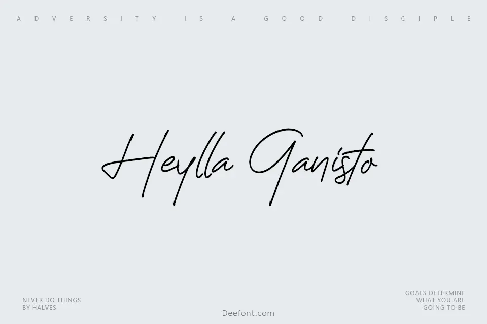 Heylla Ganisto is a sophisticated handwritten script font that captures the spontaneity and warmth of authentic signature writing. With its flowing curves, graceful letter connections, and light weight, this elegant typeface brings a personal touch to any creative project. The subtle flair in its strokes exudes refined sophistication while remaining approachable and friendly. Perfect for wedding invitations, branding elements, greeting cards, social media graphics, product packaging, and any design requiring genuine handwritten charm and emotional resonance.