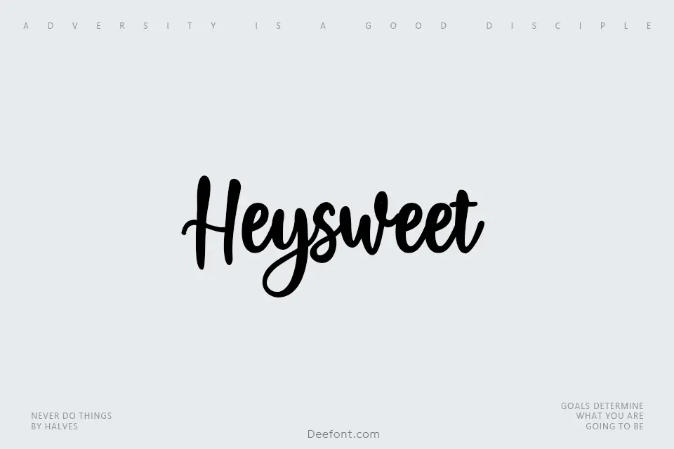 Heysweet Font is a romantic handwritten script with smooth, looping strokes and heart-flavored swashes that feel naturally inked. Its soft contrast and sweeping curves create an intimate, feminine mood ideal for wedding invitations, save-the-dates, Valentine campaigns, boutique logos, packaging, social media quotes and other heartfelt designs.