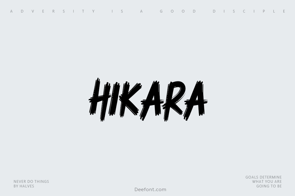 Hikara is a cool, bold and brushed display font designed with an all-caps character set. This versatile typeface delivers incredible visual impact through its textured, hand-drawn aesthetic, making it ideal for headlines, signage, posters, and creative branding projects. With its striking combination of bold strokes and playful energy, Hikara brings dynamic character to any design composition while maintaining excellent readability in display contexts.